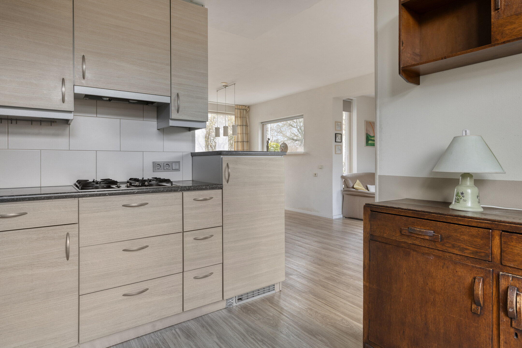 * Open keuken met diverse inbouwapparatuur en close-in boiler