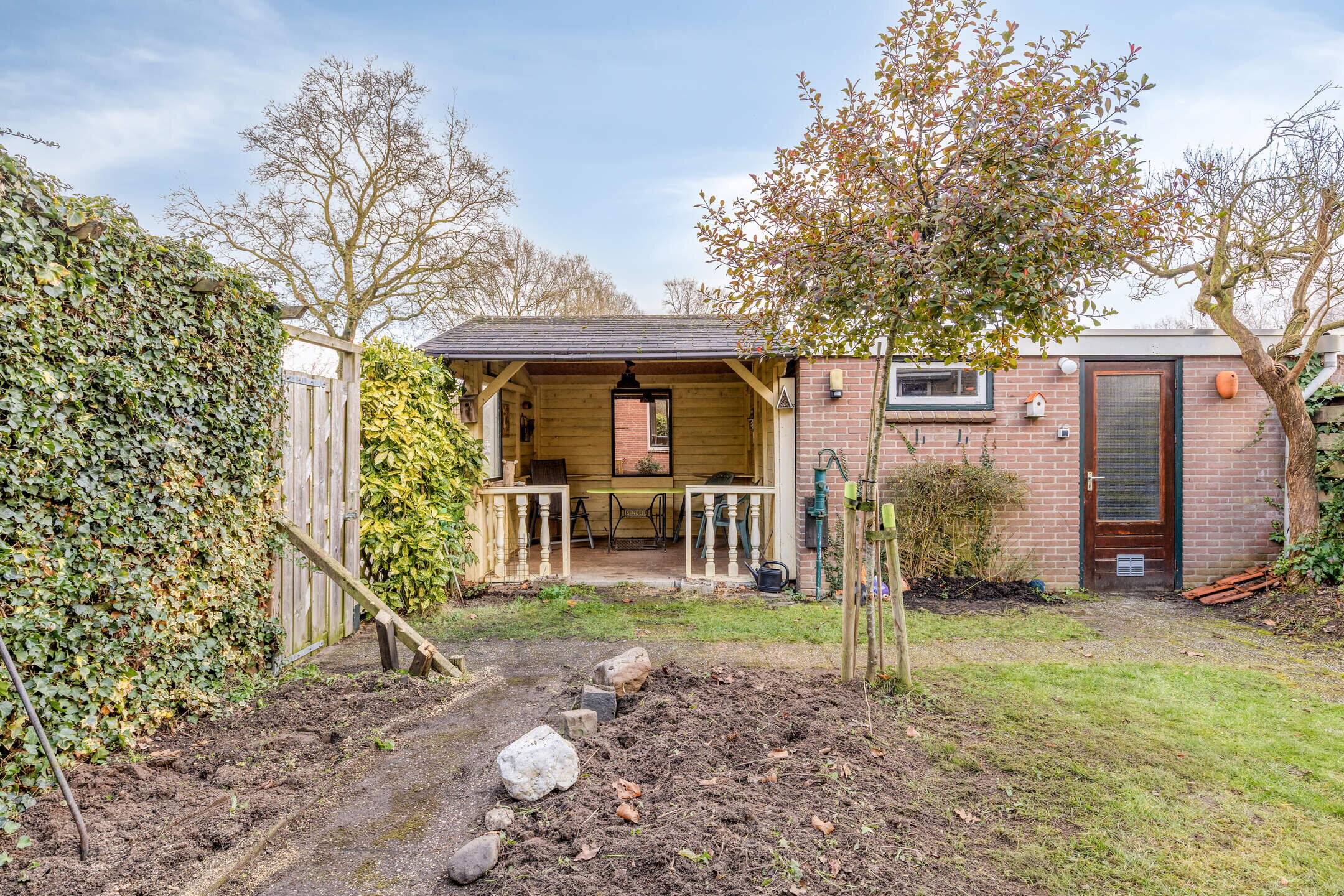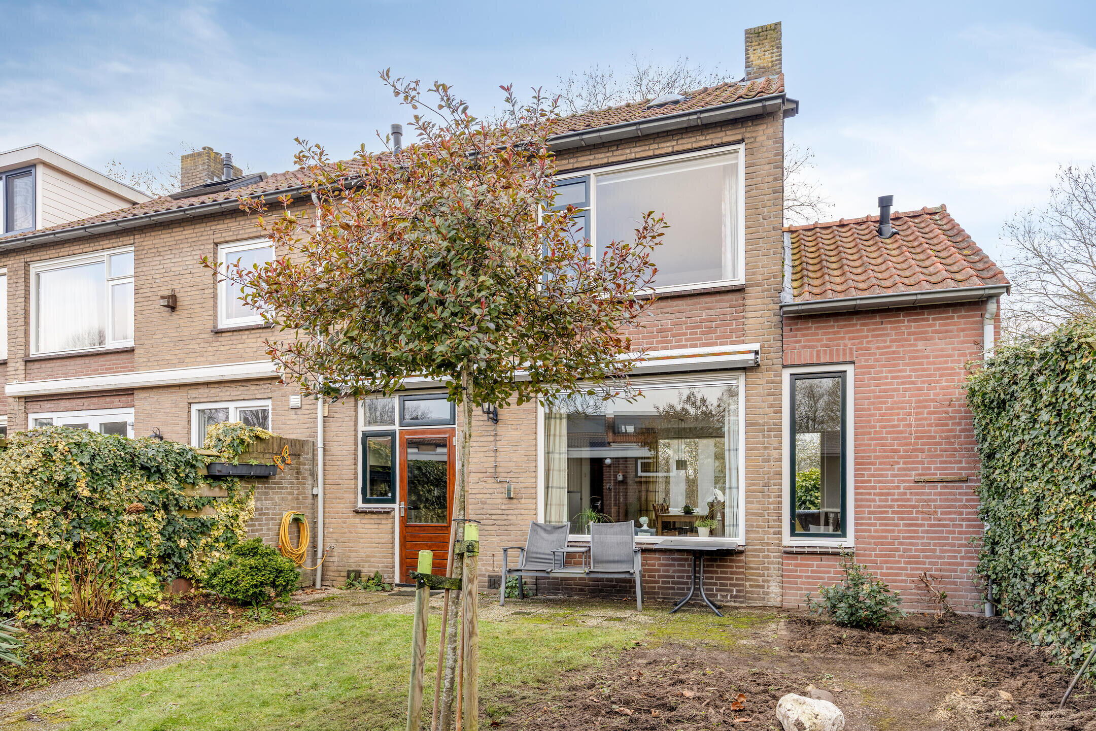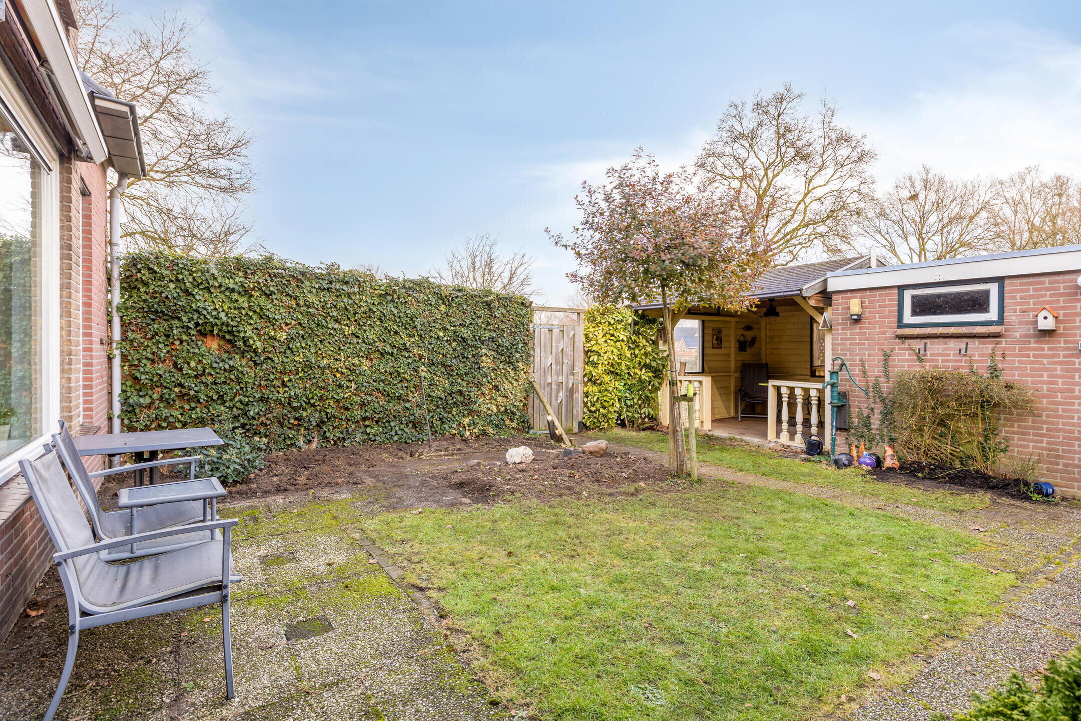 * Vrij gelegen achtertuin op het oosten met achterom en veel privacy